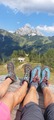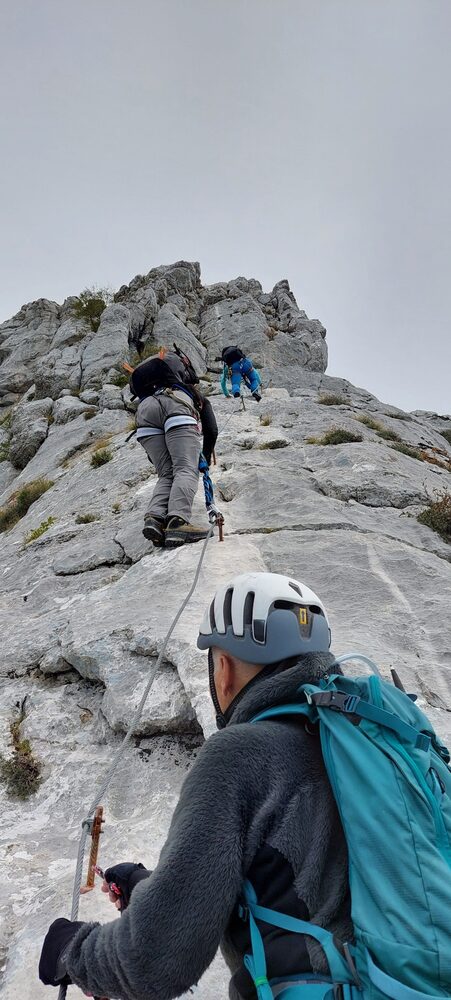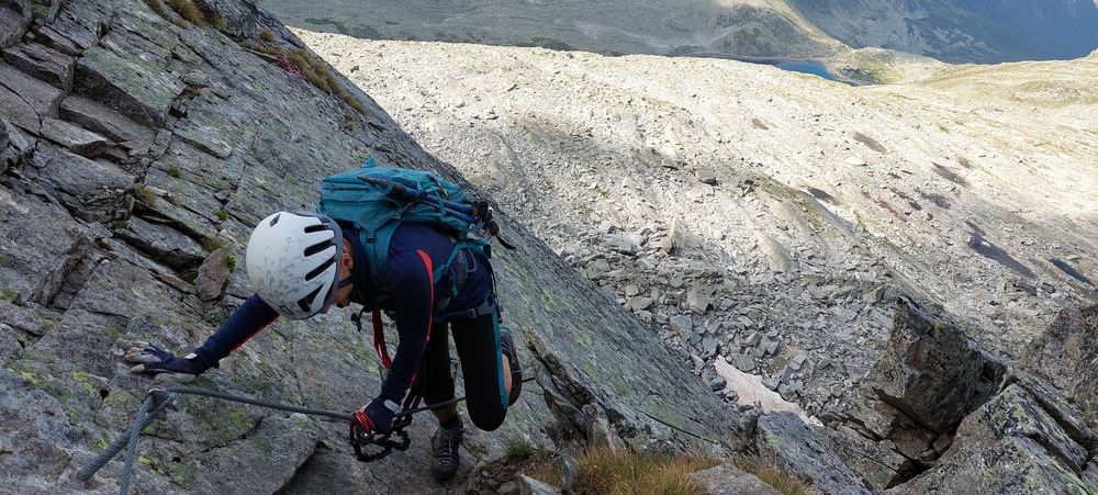 Začele smo v temi, s parkirišča v Dösener Tall, in se po treh urah hoje povzpele do koče Arthur von Schmidt. Kratek postanek, klepet z oskrbnikom, obljuba lepega dne in prijazen pozdrav: Viel Spaß! (Uživajte!) Nekaj gornikov je že šlo naprej, tudi v ferato, a razen nas so vsi prenočili v koči. Naš cilj? Izjemno zahtevna ferata. Opremljene, pripravljene, z jasnimi informacijami. Prvi odsek premagamo brez težav – poševna gredina, granitne plošče, stabilen oprijem, noben kamen ne leti dol. Same smo. Uživamo, a adrenalin preži v ozadju, kot kvas, ki čaka na tekočino in sladkor. In potem – prva začinjena E plošča. Adrenalin zavre, da ga okusiš v ustih. Štiri dame, skupaj 272 let izkušenj, združimo moč, zberemo mladostno energijo in vztrajno premagujemo odsek za odsekom. Žeja, lakota? Pozabljeno. Samo naprej in navzgor...